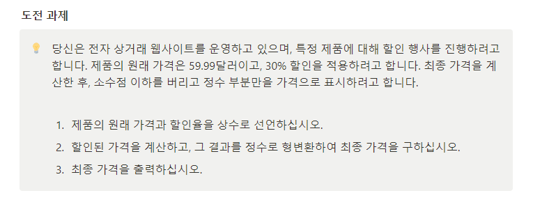 //형변환 --> 최종된 가격을 정수형을 형변환 처리