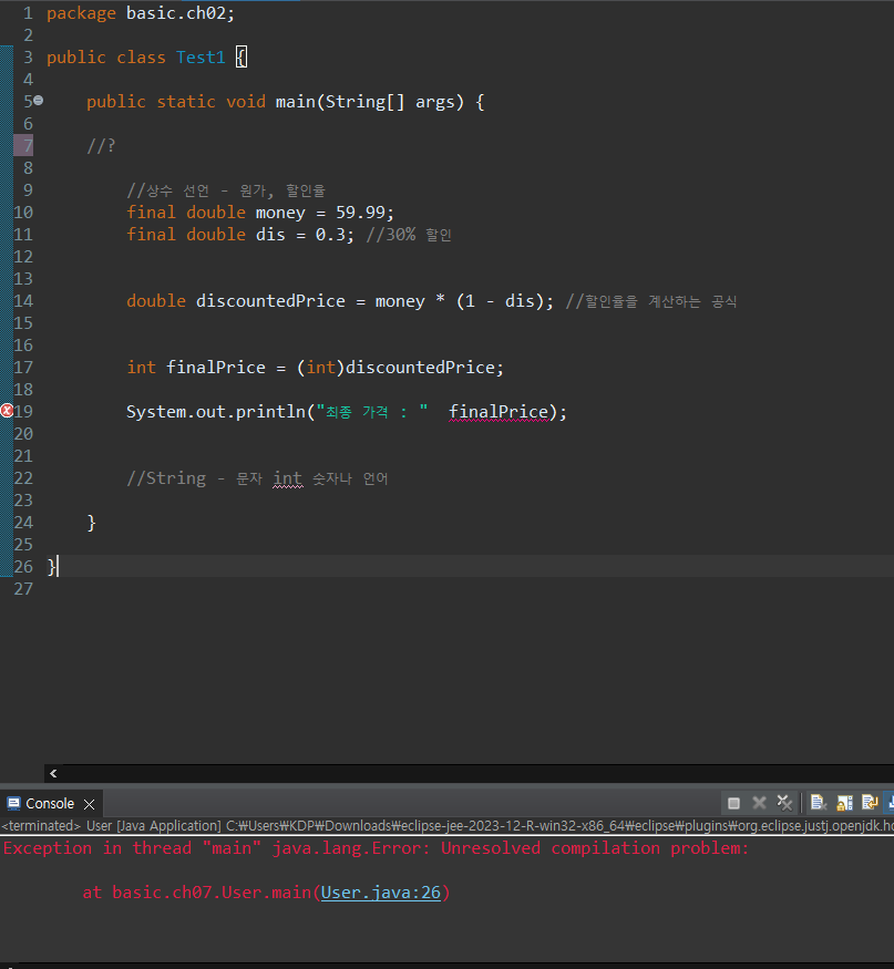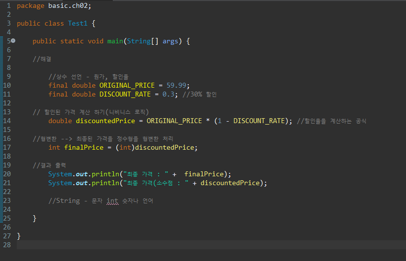 double discountedPrice = ORIGINAL_PRICE * (1 - DISCOUNT_RATE); //할인율을 계산하는 공식