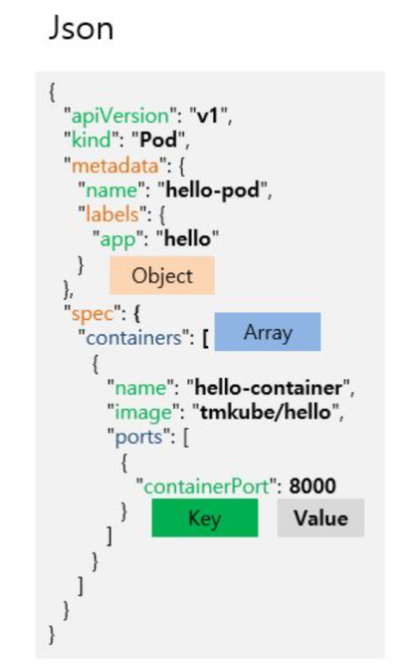 이름/값 쌍의 집합: 여기서 이름(키)은 항상 문자열이며, 값은 문자열, 숫자, 배열, 불리언(true/false), null 또는 다른 객체가 될 수 있습니다. 이 구조는 다양한 언어에서 객체(object)로 실현됩니다.