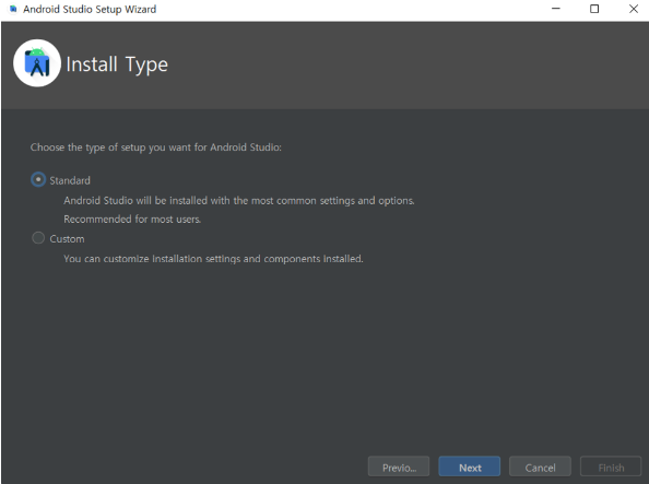 설치가 완료되었고, Finish 버튼을 눌러 Android Studio를 실행해 주세요.