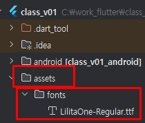 assets 파일 -> fonts 파일 -> 다운 받은 폰트를 넣어줍니다
