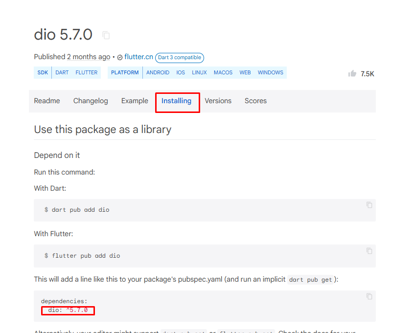 pubspec.yaml에 dio:^5.7.0를 붙여넣어 줍니다