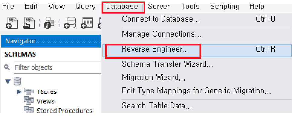 기존 연결된 스키마로 바로 리버스 엔지니어링 하는 법