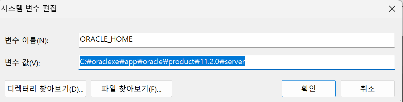 ✅ORACLE_HOME 환경 변수 추가