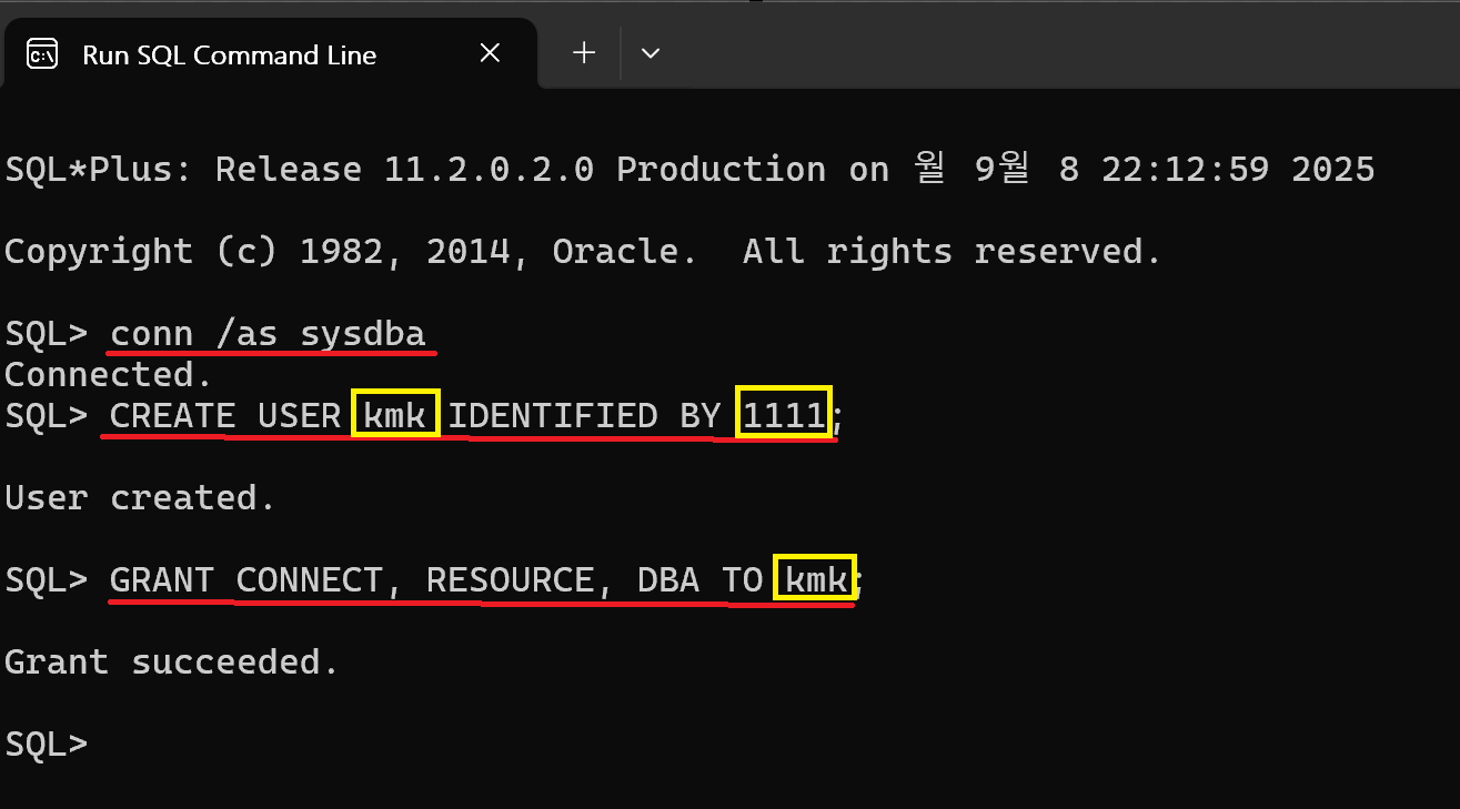 3. GRANT CONNECT, RESOURCE, DBA TO [유저네임];