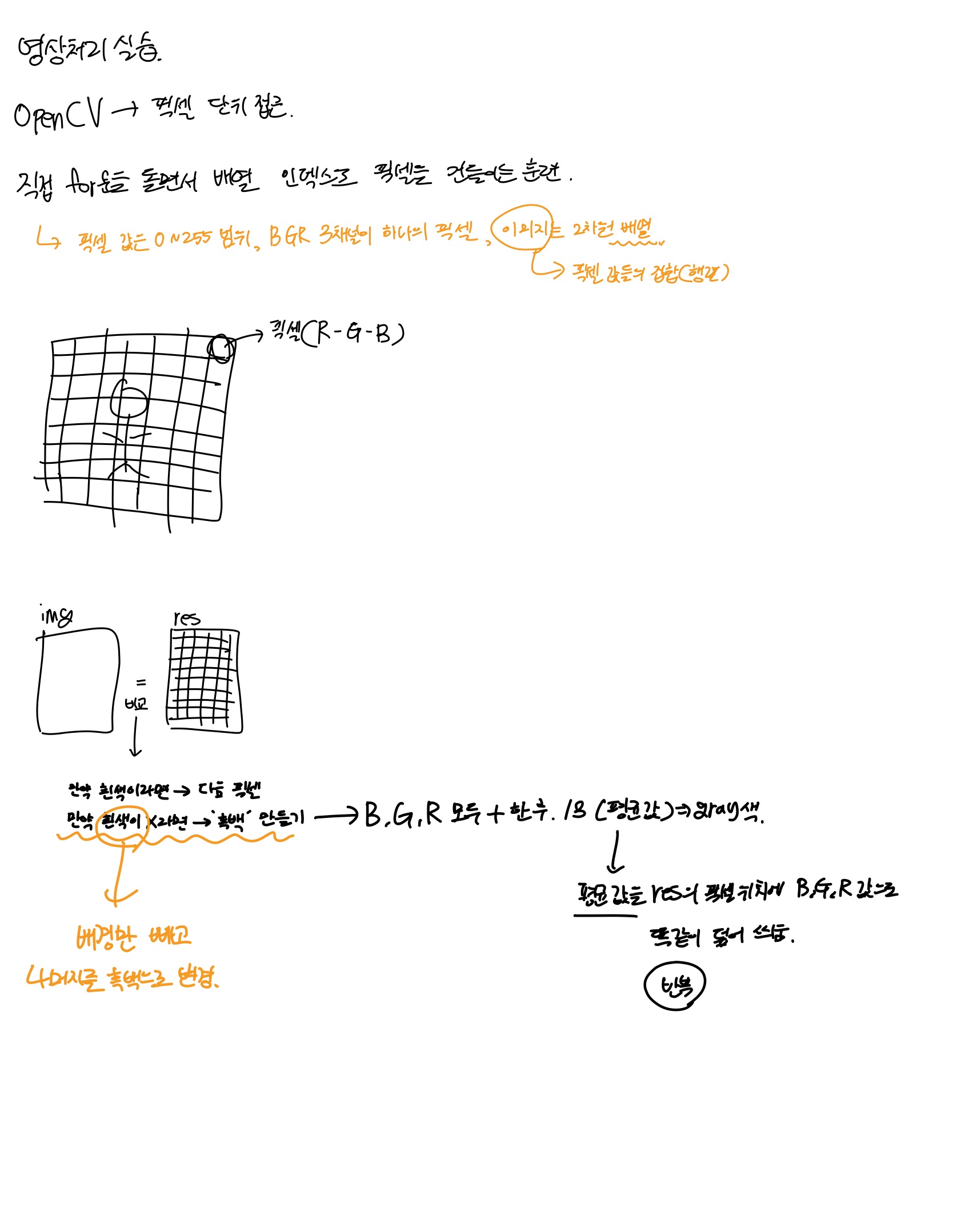 - 평균 값을 구하고 평균값을 res의 픽셀 위치에 BGR 값으로 똑같이 덮어 씌움 (반복)