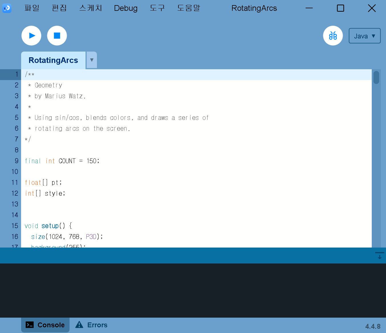 - 코딩을 이용해서 그림·영상·인터랙티브 아트 등을 만드는 개발 환경
