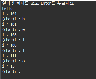 System.out.println("알파벳 하나를 쓰고 Enter를 누르세요");