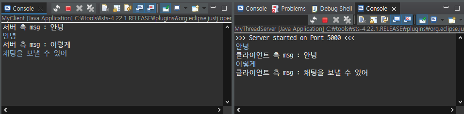 System.out.println("์๋ฒ์์ ์จ msg : " + msg);