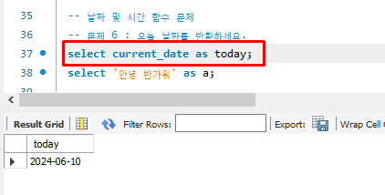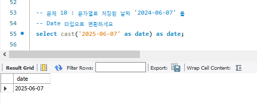 -- 문제 10: 문자열로 저장된 잘짜 '2024-06-07' 를