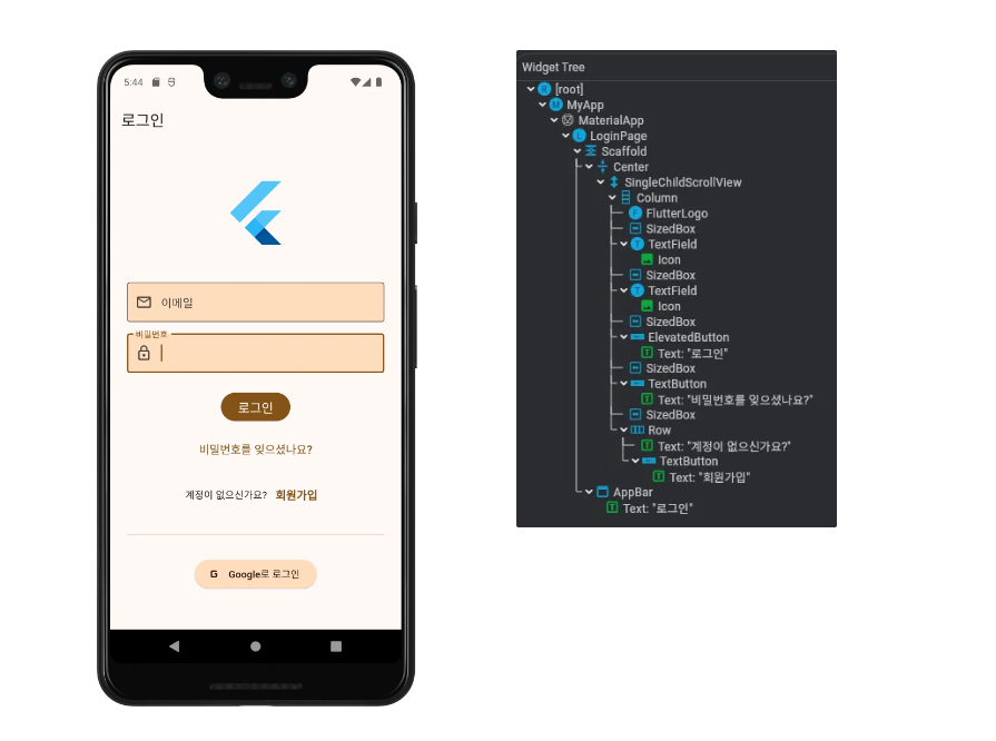구현할 화면 import 'package:flutter/material.dart';void main() { runApp(const LoginApp());}class LoginApp extends StatelessWidget { const LoginApp({super.key}); @override Widget build(BuildContext context) { return MaterialApp( debugShowCheckedModeBanner: false, home: const LoginPage(), ); }}class LoginPage extends StatelessWidget { const LoginPage({super.key}); @override Widg..